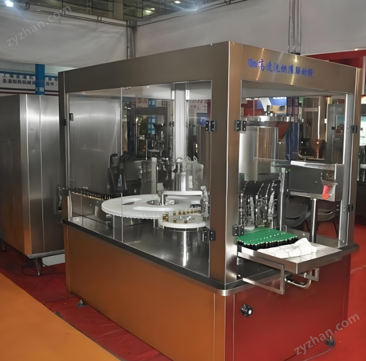50ml高速灌装机是口服液生产线中的灌装、封口主机,主要用于对50ml易拉盖(或铝塑盖)直管瓶的灌装、上盖、封口。采用网带进瓶,送瓶可靠;十二头局部跟踪灌装,不易产生泡沫。电磁振荡送盖,上盖率高,十头行星轧盖,调节方便,性能稳定。该机灌装封口合二为一,设计优,结构紧凑。