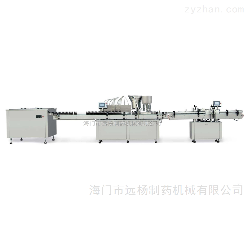液体灌装旋(轧)盖机、DJ灯检机、LT立式不干胶贴标机组成,各单机也可单独使用。