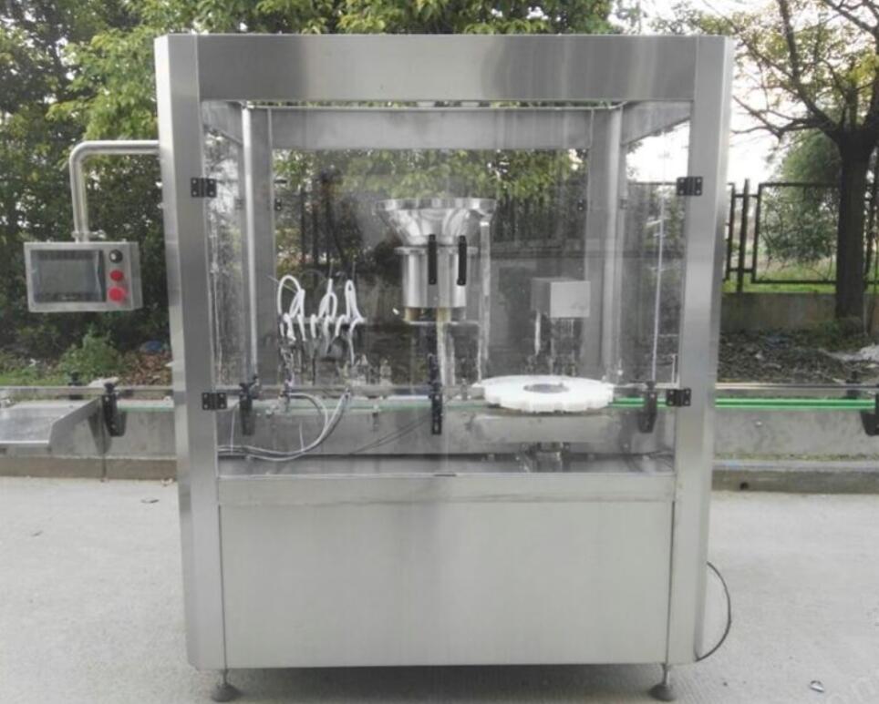 糖浆灌装机适用于制药厂小剂量的酊水,糖浆灌装和轧盖工序,全机可完成理瓶、输瓶、定量灌装、理盖、送盖、轧盖工序,凡与药物接触的零部件均采用316L不锈钢或PTFE制造,具有无瓶不灌装,变频调速等功能。